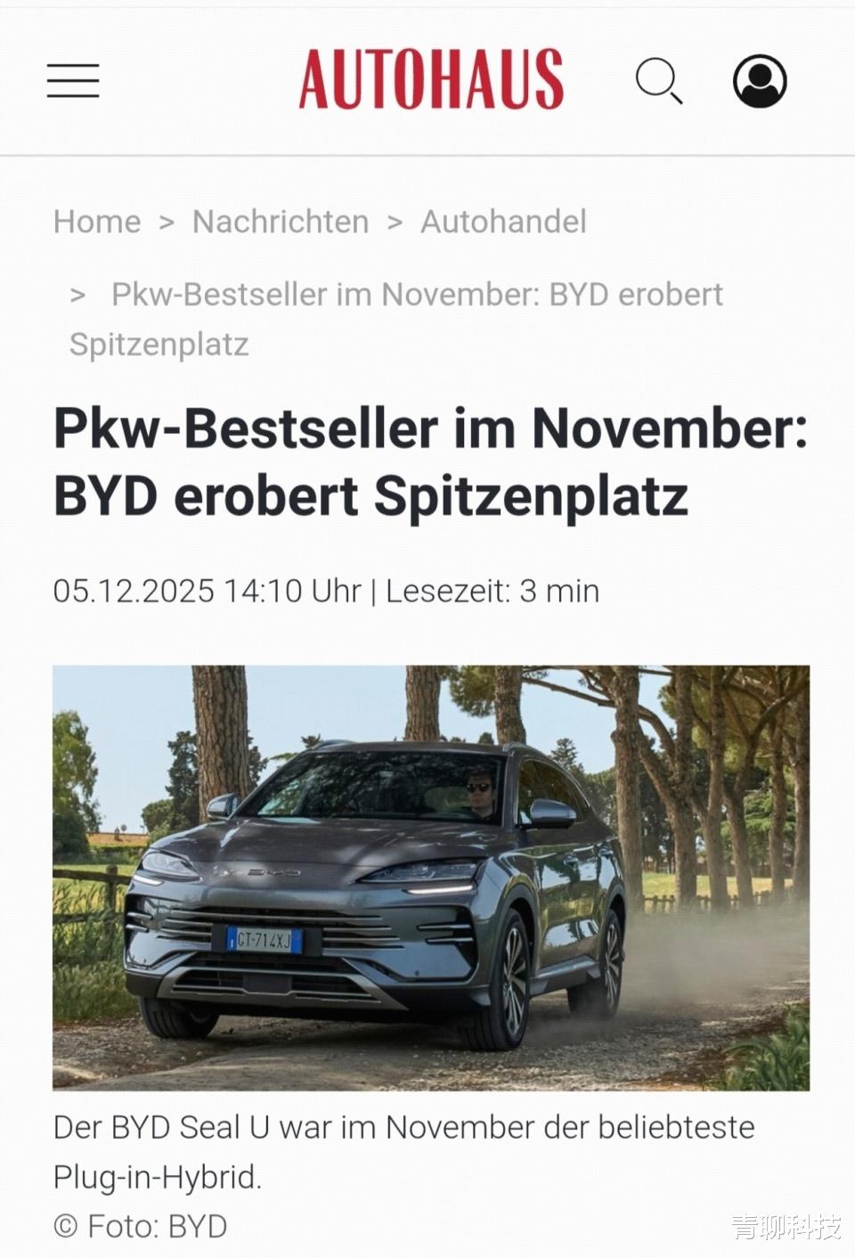 最近车圈有个消息挺炸的——比亚迪的宋PLUS(在海外叫BYD SEAL U),居然拿下了德国11月份插电混动车型的月度销量冠军。