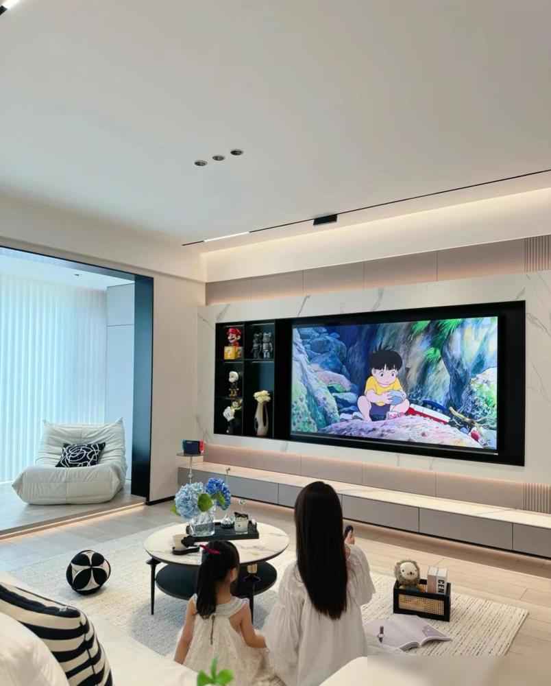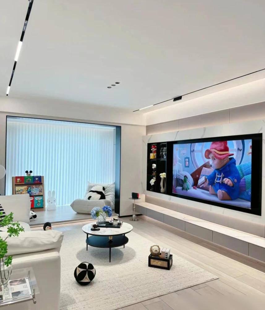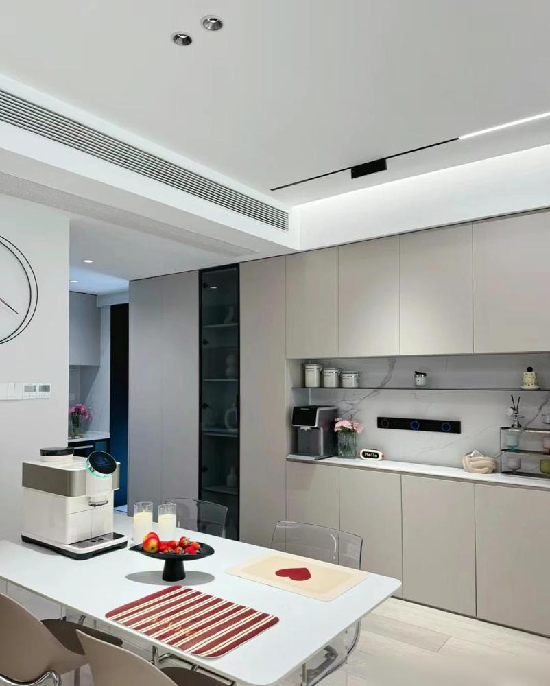 这套房子的装修确实让人眼前一亮。难怪能吸引那么多邻居去参观。客厅的无主灯设计现在很流行,磁吸轨道灯搭配射灯,光线层次感一下子就出来了。不过这种设计对层高有要求,普通住宅得提前规划好。