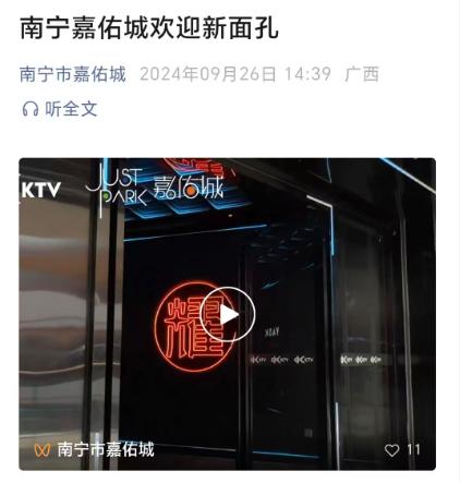 2024年,来自广东的嘉佑城接手了江宇世纪广场,并改名为嘉佑城,同时进行招商工作。项目官微显示,2024年6—9月,嘉佑城招来了耀K.KTV、蛙来哒、METOON等商家。