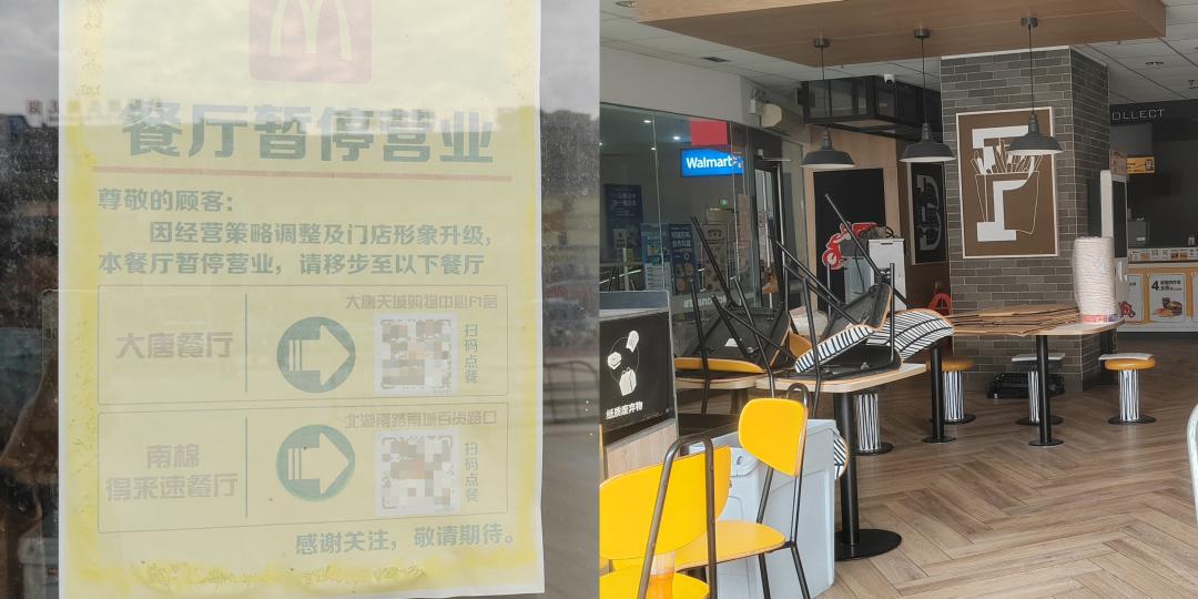 去年还正常营业的麦当劳餐厅也打出了暂停营业公告。