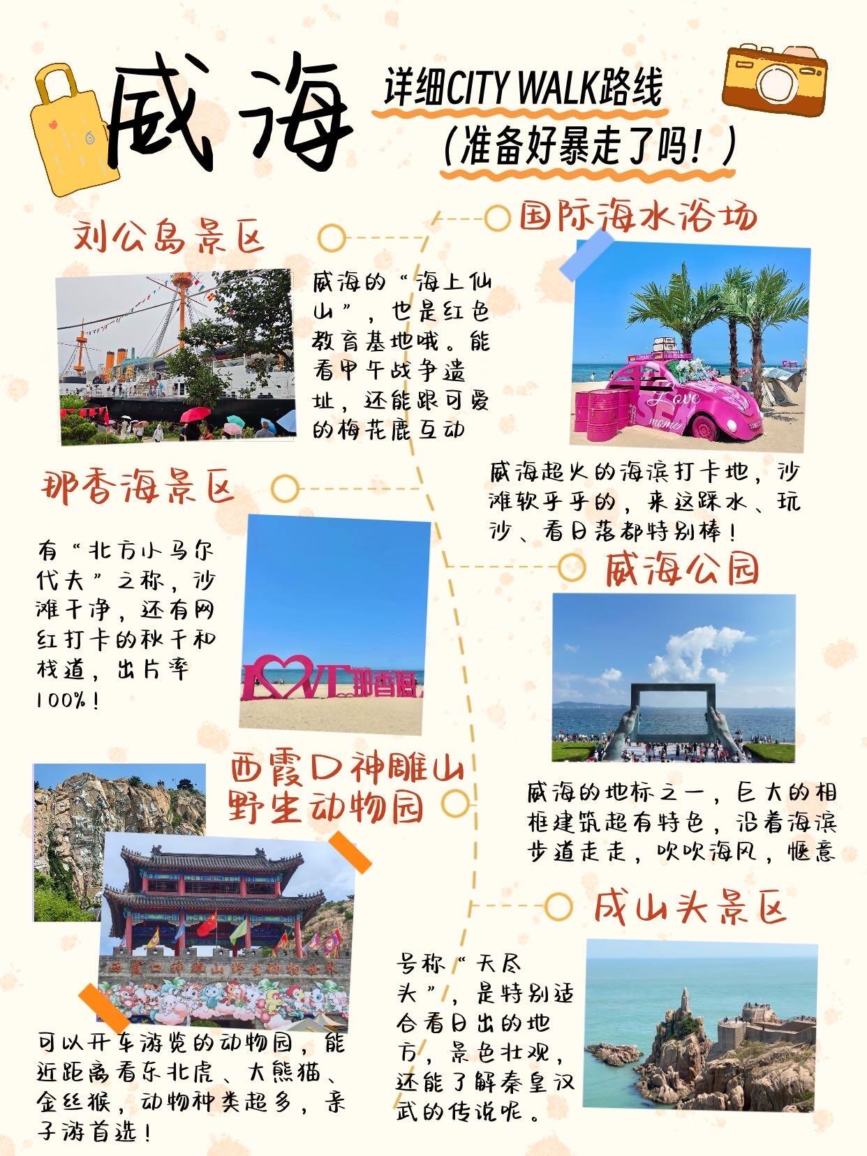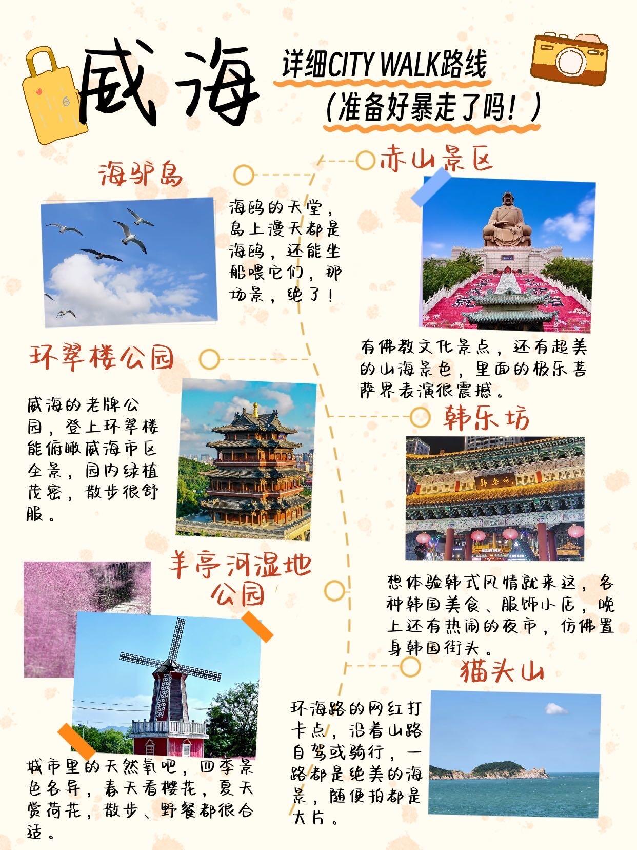 🚶♀️路线推荐: 刘公岛—国际海水浴场—威海公园—猫头山—韩乐坊 一路逛遍红色景点、沙滩日落、地标相框、环海公路和韩风夜市🌊📸 每个点都超出片!记得穿舒服的鞋~👟