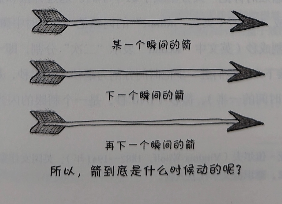 上帝秘密地赐予了赫拉迪克一个奇迹。这一瞬间——一滴雨顺着他的脸颊滚落,致命的子弹还在飞来的途中——被放大、拉长和膨胀了。整个世界都静止了,但他的思想没有停止。现在,赫拉迪克可以安心完成他的戏剧了,可以在脑海中创作和润色作品中的诗节。而这个被拉长的瞬间将持续整整一年。 在这个没人会羨慕的命运转折点,赫拉迪克收到了这样一份令所有人羨慕的礼物。 “每个艺术家的目标,”美国作家威廉·福克纳曾经写道,“都是通过人为手段让运动(或者说是生命)停下来,冻结。”牛顿曾写过对“时光流转”的感慨。中世纪的日晷上也写着:“时间飞逝。”尽管我们的目的各不相同,但所有人——包括艺术家、科学家,甚至那些被我们称为“哲学家” 的、油嘴滑舌但什么都不懂的人——都在追求同样不可能获得的奖赏。我们都想抓住时间,像赫拉迪克那样,把这独一无二的时刻握在手中。 唉,时间如白驹过隙,忽然而已。我想起了著名的“飞矢不动悖论”, 这个悖论出自古希腊埃利亚的哲学家芝诺。 这个悖论是这样的:想象一支箭从空中飞过。现在,在你的脑海中, 把这支箭冻结在某个瞬间,就像赫拉迪克的行刑队一样。这支箭还在动吗?当然不动了——冻结的意思就是定格,所以在任何给定的瞬间,箭都是静止的。但是,如果时间是由一个个瞬间构成的,而箭却没有在任何一个瞬间移动过.....那么它到底是如何移动的呢?