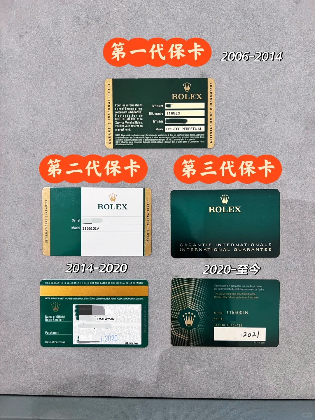 其实劳力士在真假保卡里面,真假的维度相对比例是比较小,但是劳力士改卡的特别多,因为劳力士在全世界每个地方写的这种,阿拉伯数字没有特定的统一各种弯曲来弯曲去的,导致它的可塑性空间比较大,所以劳力士走鉴定时,不止要看表的真假,还要看保卡的真假或者是否被修改了日期,这很重要,尤其是改了年份的,那价格相差挺大,这点要特别注意。