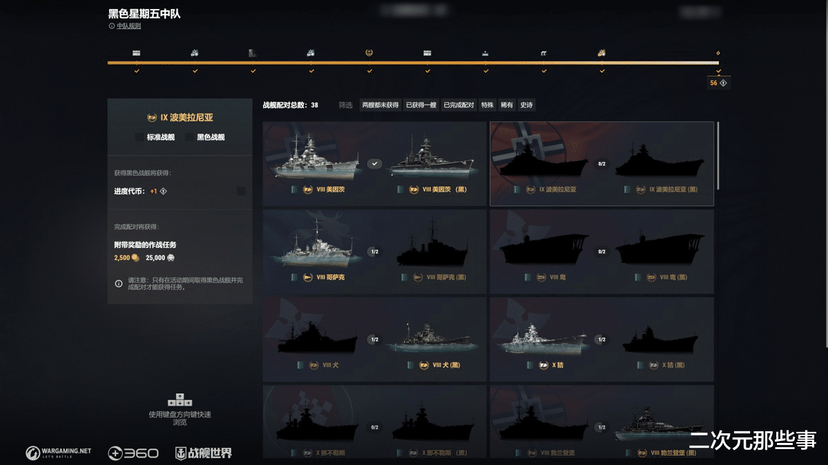 值得注意的是,这次的黑五活动还开放了“黑色星期五中队”机制。玩家们的黑五战舰和原型舰会被两两一组进行分配,完成全收集后可获得包括金币在内的奖励。同时还能推进进度,获得其他奖励。