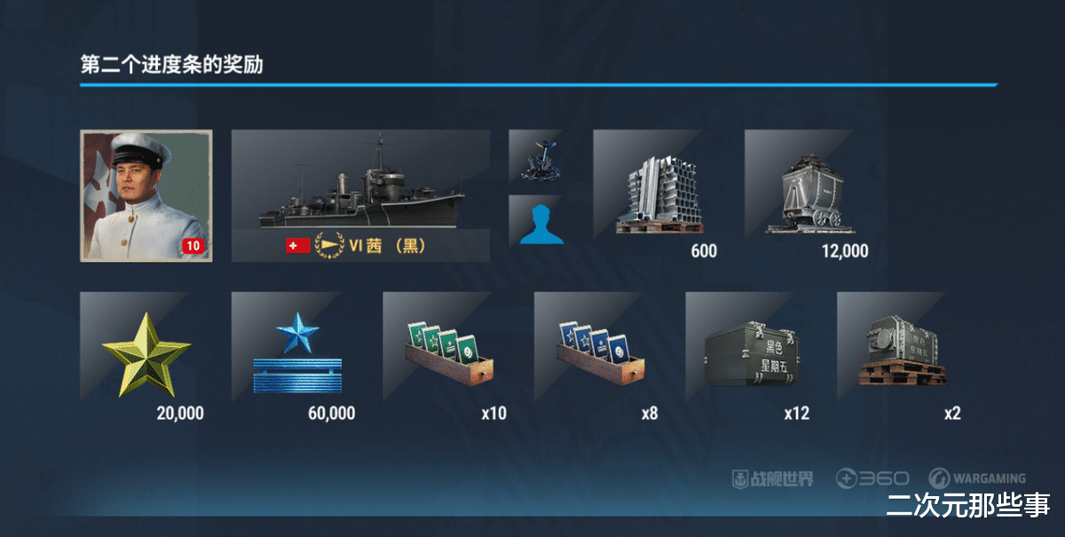 无独有偶,本次的版本通行证也和黑五活动紧密相连。完成第二进度条的奖励后,玩家们将获得六级的R系驱逐舰茜(黑),也是一艘黑五战舰作为最终奖励!