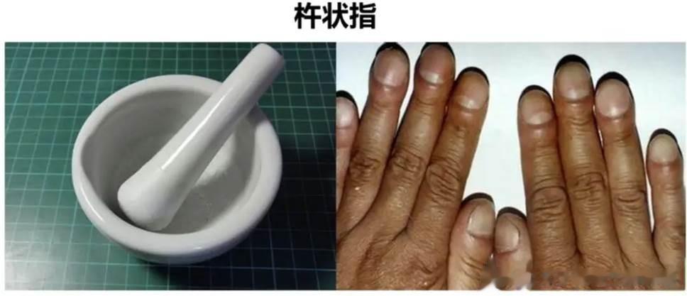 但是有一种情况是反其道而行之的,需要特别小心,即:杵状指。也就是手指末端的骨头异常粗大的情况。此时需要警惕患肺部疾病如肺癌的可能性。