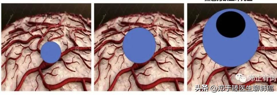 如上图所示,肿瘤在慢慢长大的过程中,由于其生长速度太快,超过了血管的生长速度,最后长到黑色的区域时,就形成了一个乏血供区域。