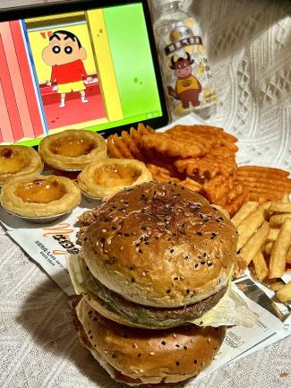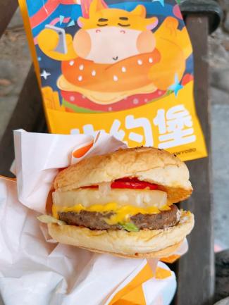 在社交平台上,随处可见大学生分享牛约堡的身影:有人拍下爆浆芝士堡拉丝的瞬间,配文“今日份快乐源泉”;有人在宿舍群里发起拼单,号召室友“一起点牛约堡,凑满减更划算”;还有人写下详细测评,从130g安格斯牛肉饼的汁水,到恰巴塔面包的嚼劲,条理清晰地推荐给更多同学。不少学生成了“常客”,甚至会带着刚入学的学弟学妹“打卡”,说“这是我们学校周边最好吃的汉堡店”。