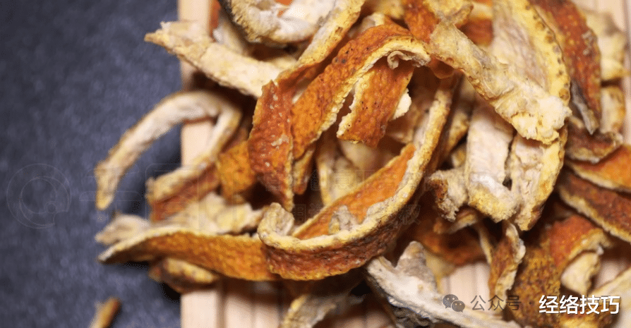 陈皮1小片,能顺气化痰,把脾胃的气机理顺,帮忙把冬季因为脾胃运化不顺畅积攒下来的痰浊消散掉,