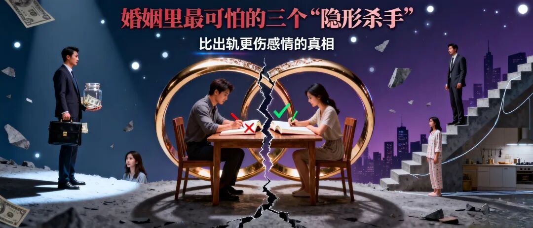 家暴、冷暴力这些极端行为,往往只是压垮骆驼的最后一根稻草。真正的裂痕,早在第一次工资条对比时、第一次教育理念冲突时、第一次无话可说的晚餐时,就已经悄悄蔓延。就像网友@李慢慢说的:"婚姻不是保险箱,是两个人合伙开公司,得一起看财报、做战略、防风险。如果只有一个人在操心公司运营,另一个人要么当甩手掌柜,要么搞内部消耗,这公司迟早要破产。"