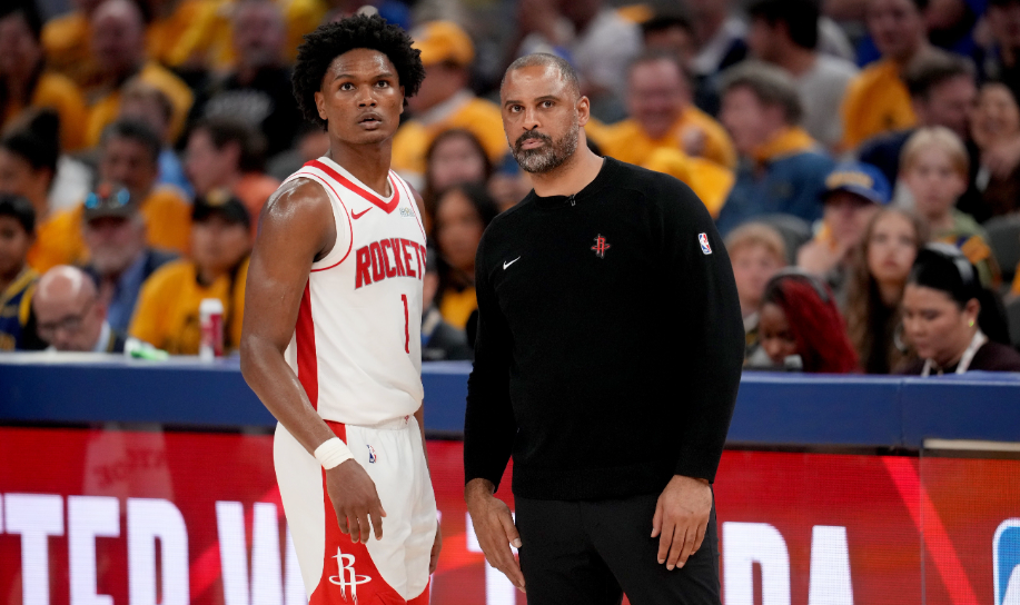 火箭首发五人为:阿门、申京、小贾巴里、杜兰特和奥科吉。