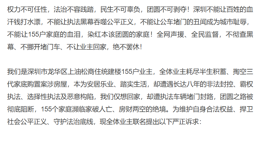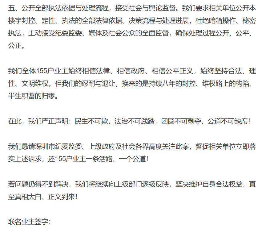 155户联名举报龙华街道执法队断水断电封控八年,望上级处理