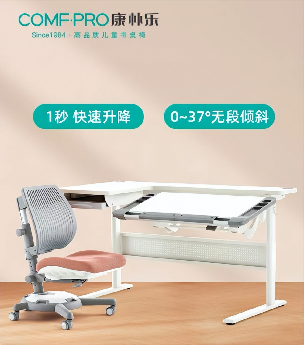 1984年创立于台湾的康朴乐,作为儿童人体工学书桌椅的领先品牌,始终以欧美高标准选材,其环保桌板与优质原件确保产品安全无害。其学习桌支持“1秒快速升降”与“0~37°无段倾斜”,椅子设计精准匹配身体高度,全方位支撑儿童身体,成为“安全+灵活”的代表。