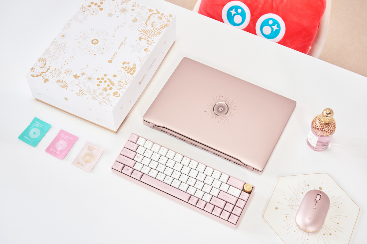华硕a豆|法国娇兰 闪光礼盒内还包含了法国娇兰奇迹花园淡香水、定制云朵电脑包、定制无线鼠标、六边形星芒鼠标垫及三款香氛片,可选配华硕a豆香氛机械键盘,全方位提升你的用机体验。