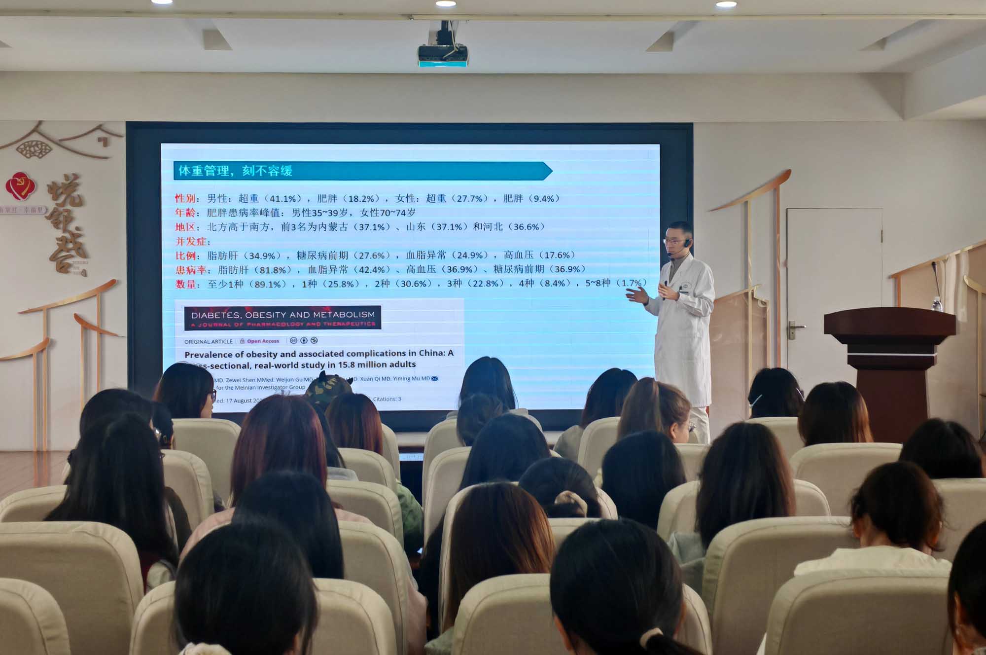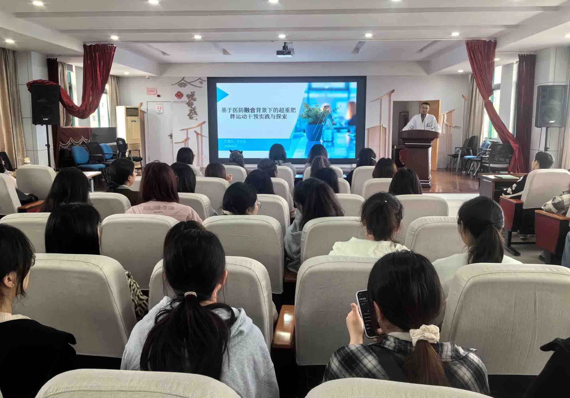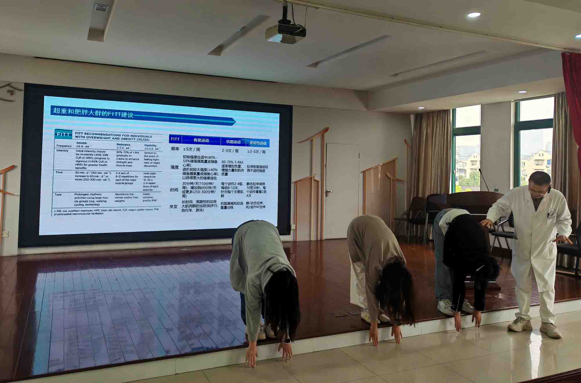 在理论教学环节,彩香二村社区卫生服务站李思惠站长围绕超重与肥胖的流行病学现状、多系统健康危害及“医防融合”政策背景下的干预思路进行了深入剖析。学生通过案例分析,理解了从个体评估到群体管理的运动干预逻辑,并学习如何根据不同年龄、体质和生活方式设计个性化运动方案。课程还讲授了慢跑的运动生理学基础、正确姿势与呼吸方法、运动强度控制及损伤预防要点,为后续实践环节打下扎实基础。