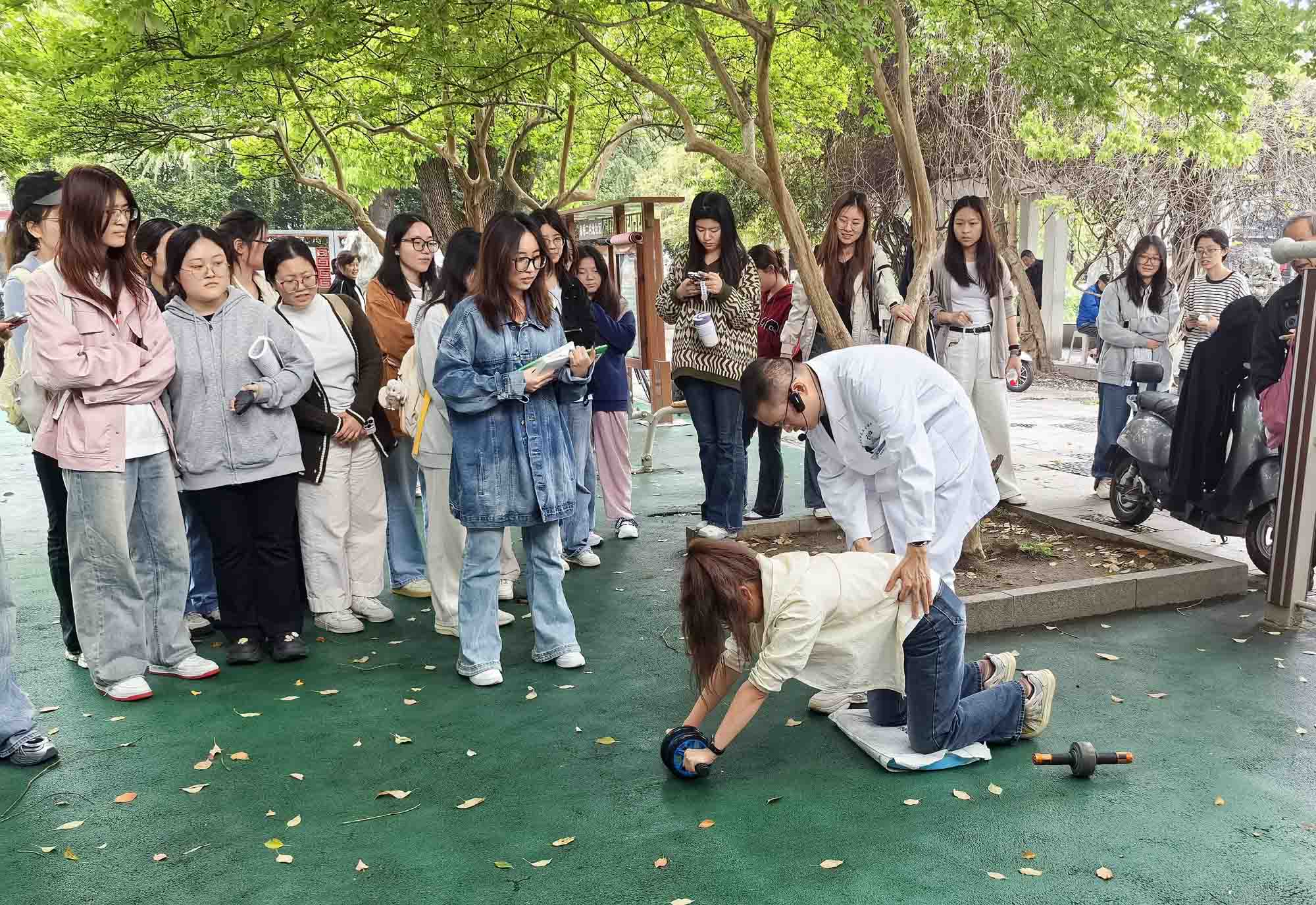 4月17日,一堂别开生面的实践课堂在基层卫生服务一线拉开帷幕,苏州城市学院城市治理与公共事务学院的学生们来到学校实践教学基地——苏州市姑苏区金阊街道彩香一村社区卫生服务中心,开展了一堂题为“基于医防融合背景下的超重肥胖运动干预实践与探索”的《健康运动学》实践课。本次活动旨在深化学生对超重肥胖健康问题的系统认识,掌握科学有效的运动干预策略,并通过实地走访与交流,强化慢跑等实用技能在社区健康促进中的应用。