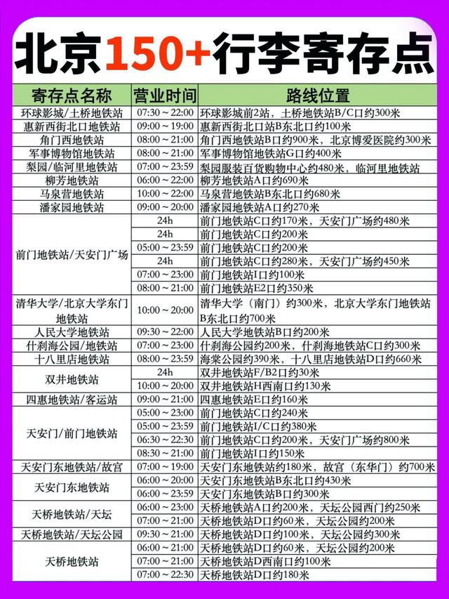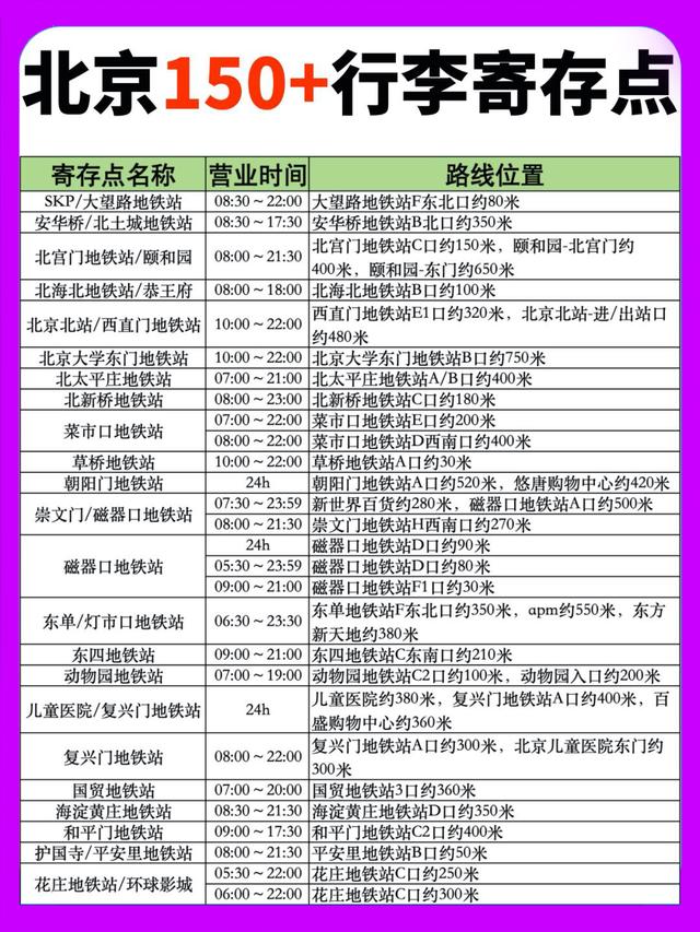 香山寄存点:寄存背包是10元/天,行李箱18元/天哦~-✅香山地铁站/香山公园·寄存点⏰07:00~23:59距香山地铁站入/出口约380米,香山公园约300米-北京还有更多寄存点• 北京站·寄存点(4个)• 北京北站/西直门·寄存点(3个)• 北京南站·寄存点(7个)• 北京西站·寄存点(2个)• 朝阳站·寄存点(3个)• 丰台站·寄存点(2个)……共150个寄存点