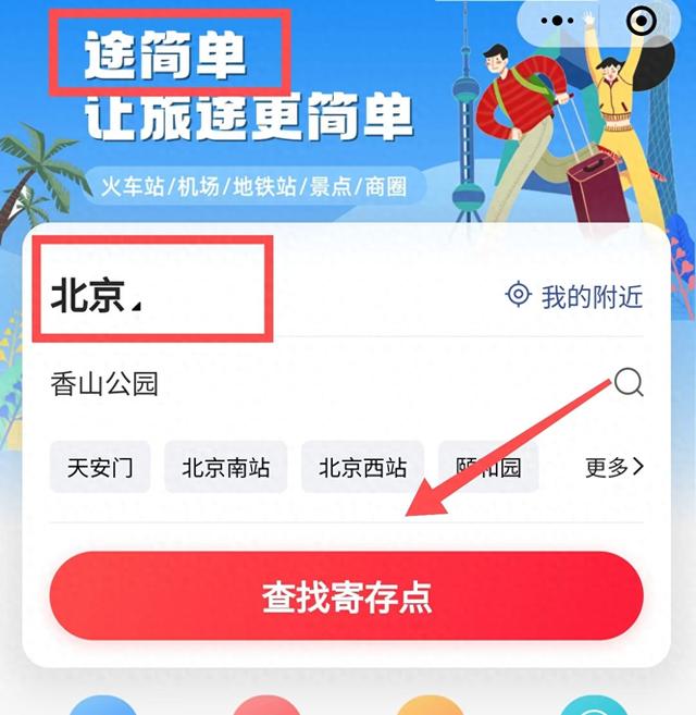 北京香山红叶已经在慢慢变红了,为大家带来香山公园和行李寄存全攻略!-⭕️怎么寄存行李?1、打开“途简单”,城市选“北京”,输入“香山公园”,就能看到寄存点。2、选择寄存点,预约寄存,到了寄存当日跟随导航前往寄存点。3、完成寄存。⚠️可过夜寄存,长期寄存,有监控。