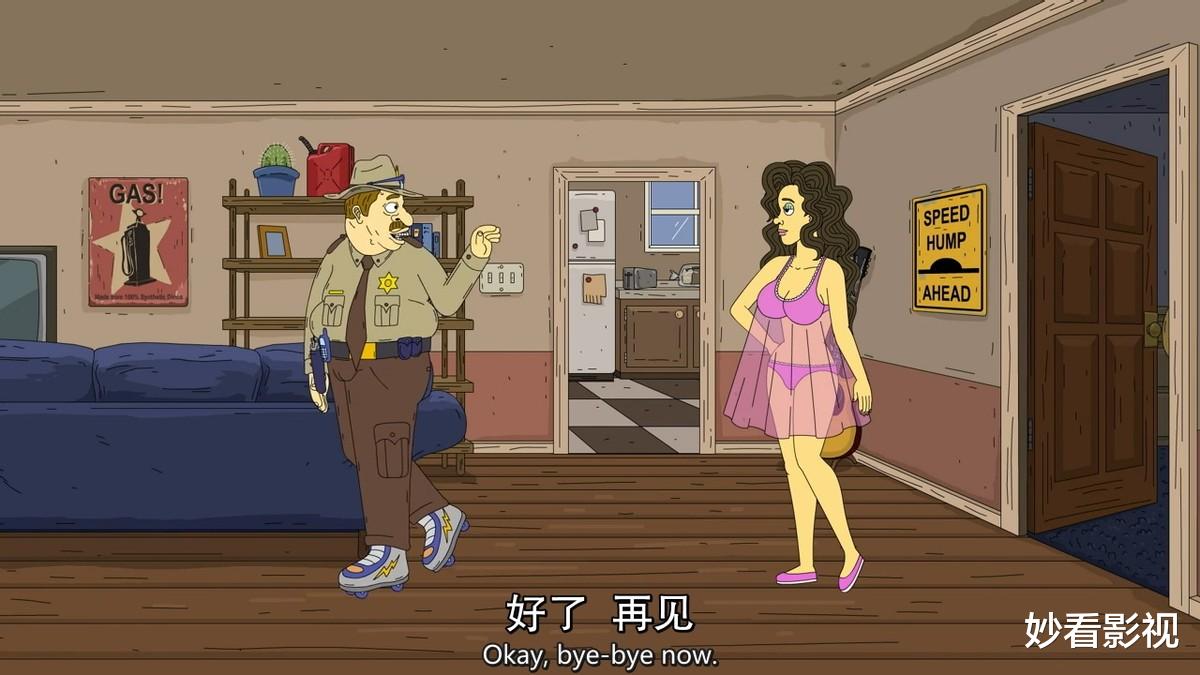 它讽刺美国小镇生活,讽刺执法机构,甚至讽刺生活中的方方面面。在《选举》一集中,警长拉票失败,总统亲自介入支持他。结果警长因不雅暴露被捕,古德曼夫人成了新警长。然后故事走向更加诡异,牢美集结一众国家比拼恐龙阳物尺寸。这种情节已经超越了无厘头,而是在用荒诞解构权力。