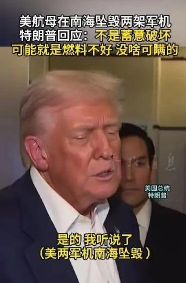 2025年10月上旬,美军第七舰队在南海搞自由航行,结果一架F/A-18和一架MH-60接连掉进海里,飞行员都弹射出来了,人没事儿,两架飞机加起来值两亿多美元,水深超过一千米,打捞基本没戏,特朗普当时正在亚洲跑行程,私下说了一句燃油质量有问题,这话本来想轻描淡写,没想到反而捅开了一个大窟窿。
