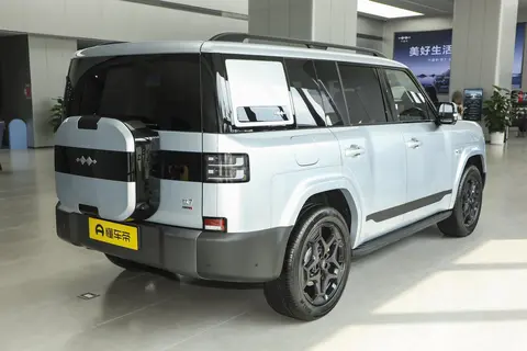 不光是整体造型,车身线条也特讲究。它用的是那种硬派的外棱线设计,线条干干净净、利利索索的,从车头一直贯穿到车尾。这种直线条一弄,车子的硬朗劲儿一下就上来了,还带出点路虎卫士那味儿的 “城市感”—— 既有越野的那种野劲儿,又不失城市 SUV 的精致。