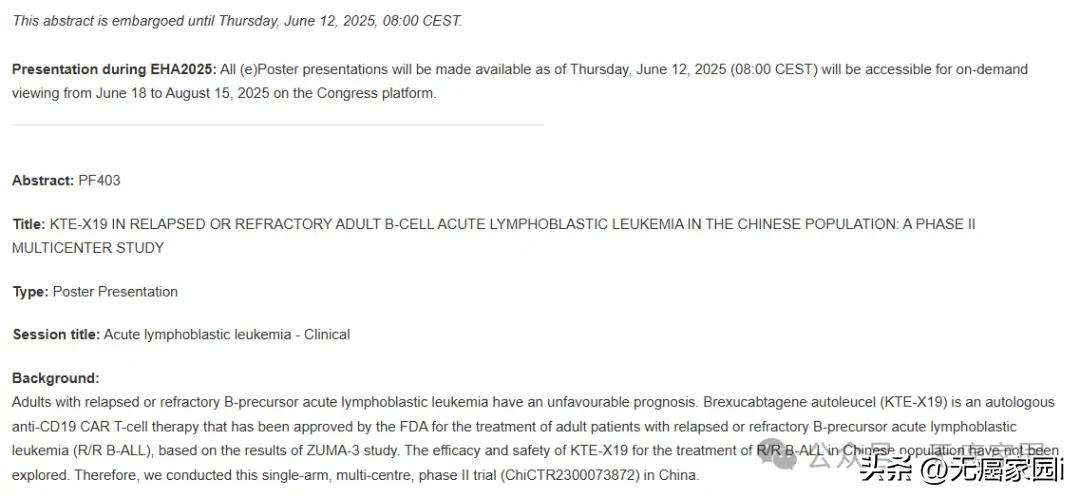 其临床研究数据早在2022年12月的第64届美国血液学会(ASH)年会上进行过口头报告。