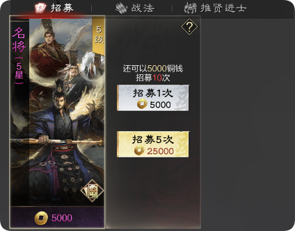 青春服的独特玩法很好理解,不花钱抽卡,所有玩家不再需要氪金就可以抽武将角色和稀有战法,消耗的不再是氪金资源道具,而是游戏中的基础货币单位铜钱。