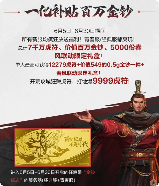 当然,如果只是“公平”,或许还不足以让这些深处流量漩涡中心的顶流主播们,在竞争最激烈的暑期档投身到全新的游戏品类。真正让他们下定决心的,是《率土之滨》于6月份推出的王牌,补贴亿元的“开荒节”。