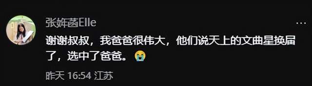 张姩菡在文中说:“爸爸总说,他这辈子,就是为了打破命运的枷锁,为了我能不用吃他吃过的苦。可我宁愿他不那么厉害,宁愿我们家不那么有钱,我只想让他好好休息,只想让他陪我久一点。”