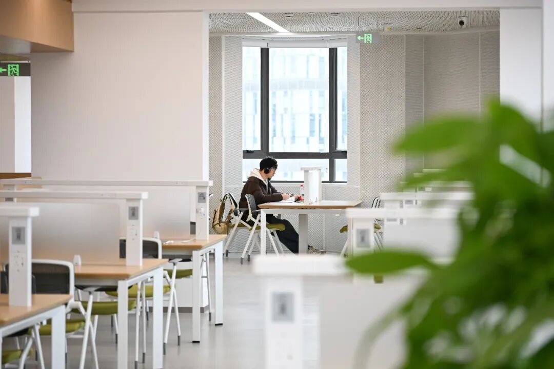 走进焕然一新的图书馆,会发现许多藏在细节里的“小心思”。超过1200个智能学习座位错落有致地分布其间,每个阅览座位上配备的“墨水屏”智慧管理系统,让预约座位、查找资料变得如同操作手机一样流畅便捷,真正实现了绿色低碳与数智化的深度融合。