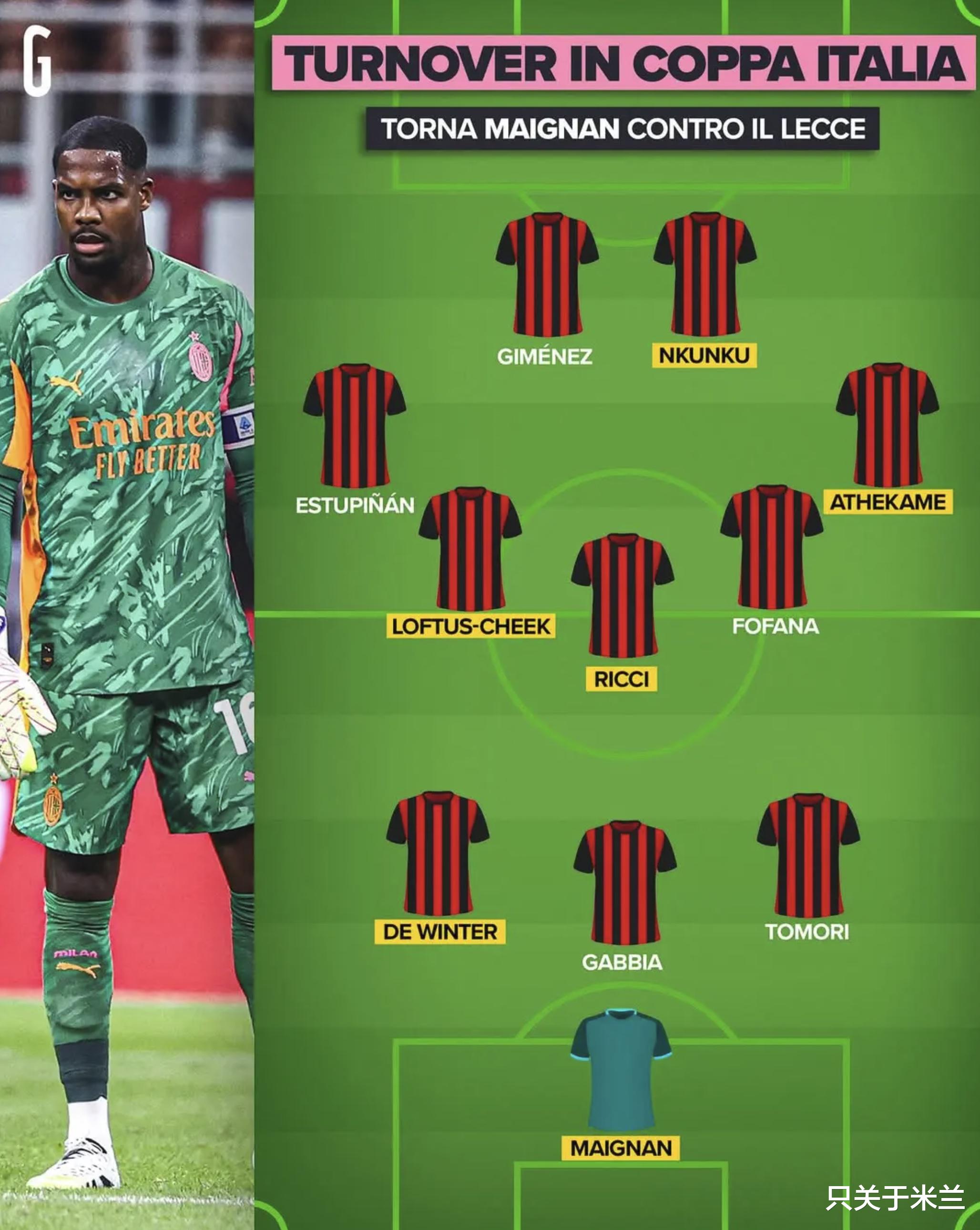 据《米兰体育报》预测,球队将进行多处调整以保持活力。迈尼昂伤愈复出重掌首发,德温特将首次以左中卫身份与加比亚、托莫里组成三中卫。