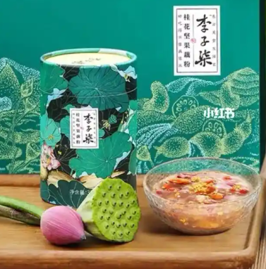 成分:藕粉+坚果+果干等,甜度来自冰糖。