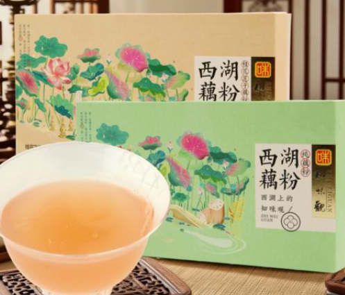 口感:片状雪片藕粉,冲泡后晶莹剔透,藕香浓郁,微甜回甘。