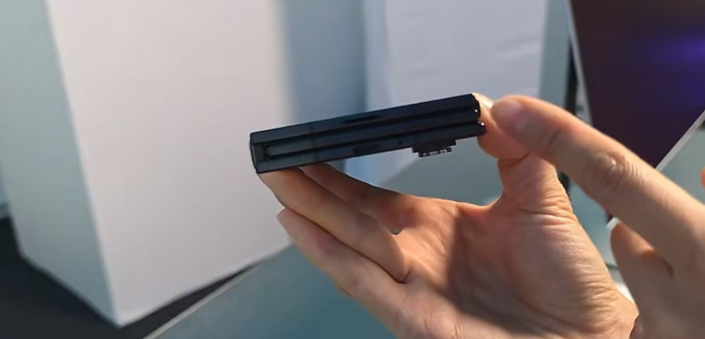 其实,这样设计埋藏了三星的用户思维。铰链的大小设计考虑到的是手机折叠的收纳与贴合,上手体验的话,你会发现,三星Galaxy Z TriFold从右侧无法进行折叠收纳,反而会空出一小块,而且手机会伴有嗡嗡嗡的震动声。而若从左侧进行收纳的话,便不会出现这样的问题,而且贴合度非常不错。屏幕大小方面,将最下面的设计略突出一些,则是为了更方便用户展开手机,使用起来更加方便、省心。