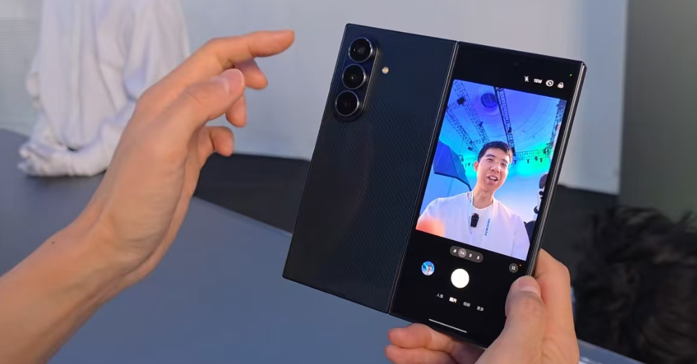 影像方面,三星Galaxy Z TriFold采用了竖排后置三摄像头设计,中间是一颗2亿像素的主摄,上面是1200万像素的超广角镜头,下面则是1000万像素的长焦镜头。不管是日常拍照,还是进行视频拍摄创作等,都基本上能够满足我们多种场合下的使用需求。根据数码博主@李大锤同学的评测视频来看,这款手机在左边屏幕折叠的情况下,还可以利用后摄镜头自拍,而且从其拍摄显示的画面来看,手机像素非常赞。