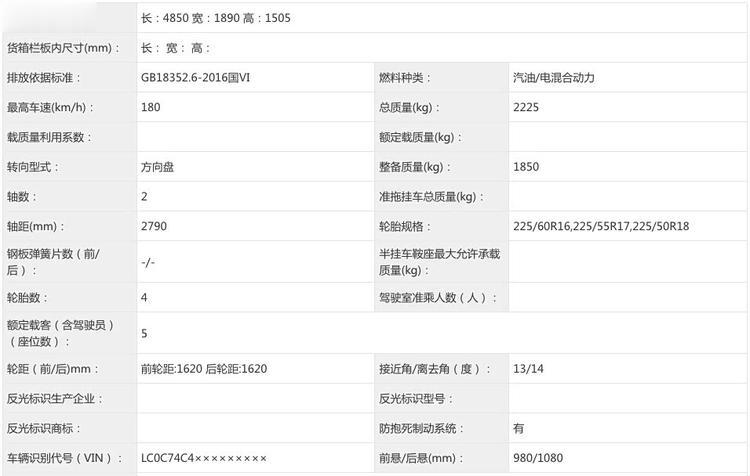 车尾部分的设计也延续了现有思路,贯穿式的尾灯组是当前常见的设计语言,后包围采用了与车身异色的处理,并设计了内凹的车牌安装区域,底部还配有扩散器样式的装饰面板。车顶扰流板内整合了高位刹车灯,而后窗雨刮器在此次申报中显示为可选配置。新车的车身尺寸长宽高分别为4850毫米、1890毫米和1505毫米,轴距为2790毫米。