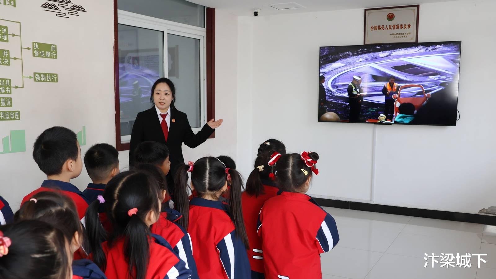随后,干警王悦带领同学们来到人民调解室,通过生动的案例,向大家展示了如何通过调解达成双方满意的解决方案,以及调解在化解双方矛盾、促进社会和谐稳定中的积极作用。