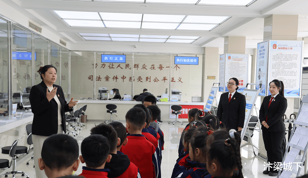 在执行指挥中心和法院荣誉室,王梅芳法官向孩子们介绍了法院如何通过科技手段查找财产、保障胜诉当事人权益,直观展现“司法公正最后一公里”的落地过程和所获成绩。