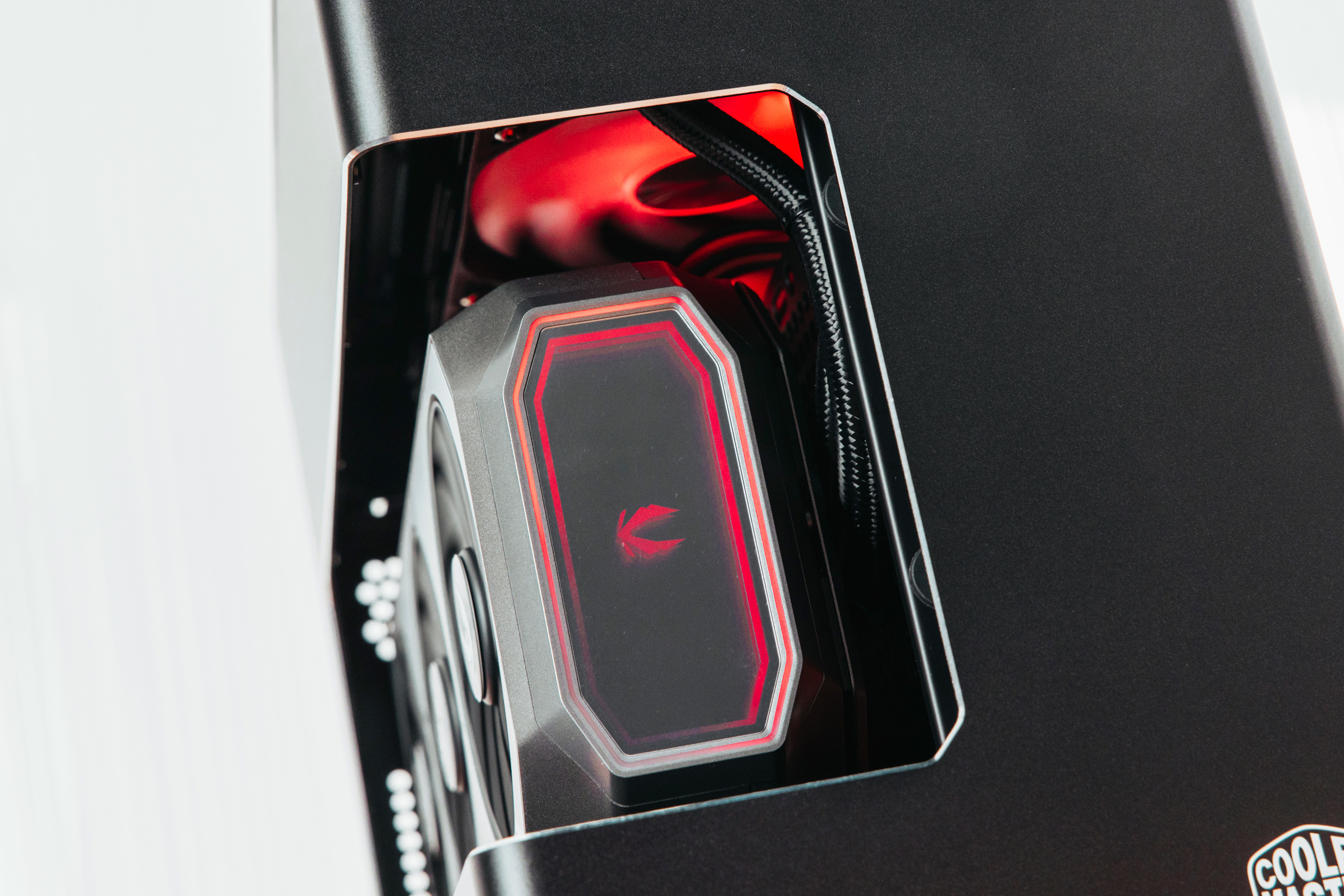 仰视角度,可以看到顶部的冷排风扇灯光效果。