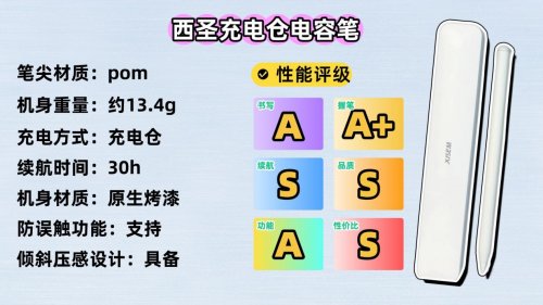 一句话总结:采用充电仓,总续航约 30 小时,在百元档产品里属于领先表现西圣在平替电容笔领域一直保持着强势地位,长期深耕书写性能优化,在数码技术和工艺方面积累了扎实的研发基础。品牌整体走稳健路线,不依赖宣传堆砌声量,而是以品质和体验取胜,每一款产品都有严格的质量要求,从做工到细节都体现出成熟的技术实力。
