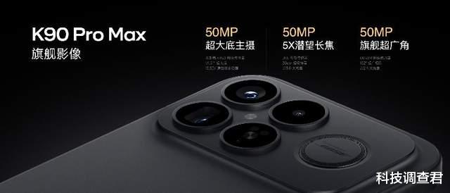 从超大底主摄到 5倍潜望长焦,影像满贯焦段无忧K90 Pro Max 搭载 5000万像素“光影猎人950”超大底主摄,1/1.31英寸超大底传感器具备13.5EV超高动态范围。采用旗舰同款 1G+6P 镜头,逐片镀膜有效降低画面发雾、鬼影、眩光。升级 5000万像素5X光学潜望长焦镜头,支持10倍无损变焦与20倍AI超级变焦,无论是远景建筑还是运动抓拍,都能清晰定格。