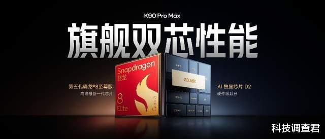 两款新品中,REDMI K90 Pro Max集尖端科技于一身,搭载第五代骁龙8至尊版与AI独显芯片D2构成“最强性能双芯”,搭配 REDMI史上最强6700mm² 3D冰封循环冷泵,确保极致性能持续冷静释放。
