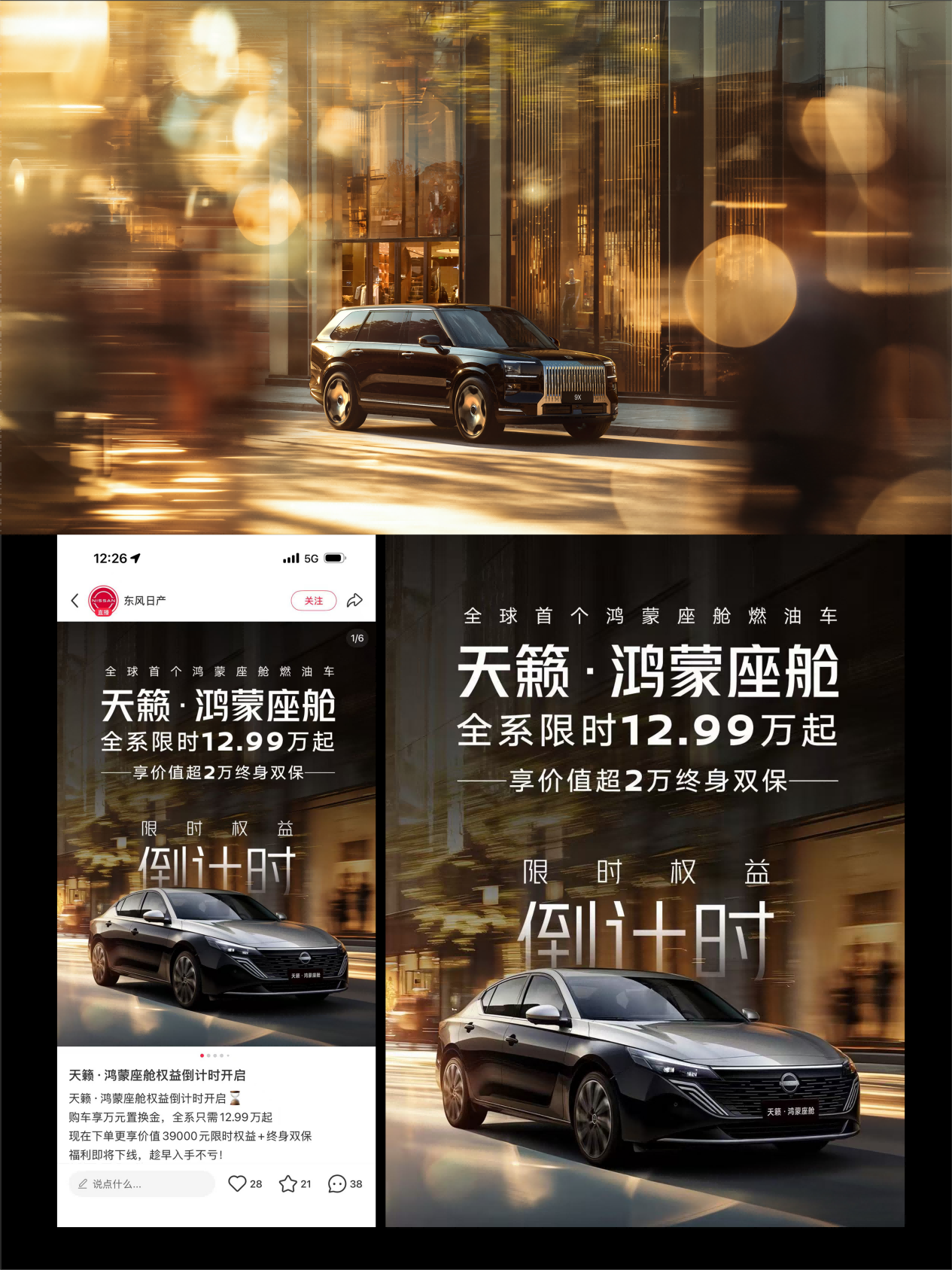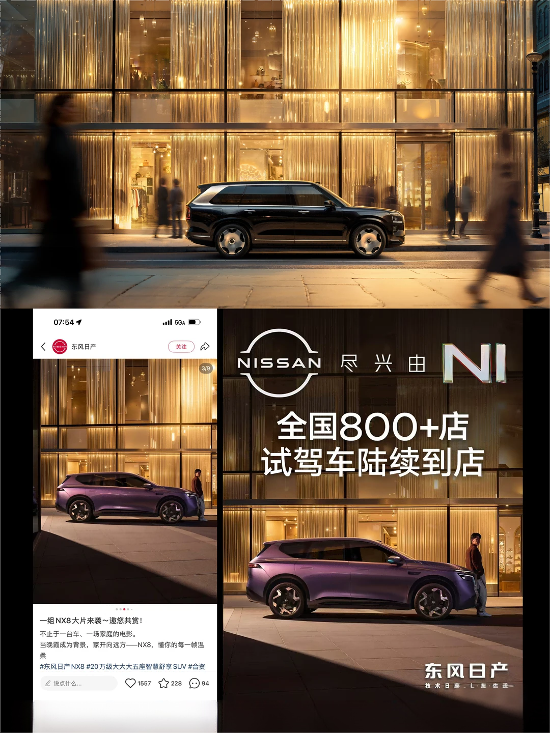 设计大佬给极氪 9X打磨的AI海报质感拉满,转头就被东风日产NX8全套照搬背景、光影与构图,仅替换了自家车型。