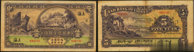 民国十五年(1926年)中国垦业银行伍圆,上海地名,加印领券“正”字,PMG-30分,为《中国华商纸币图说》第94页原物,纸张硬挺厚实,纹理清晰,原汁原味,八成新,曾拍出32200元。