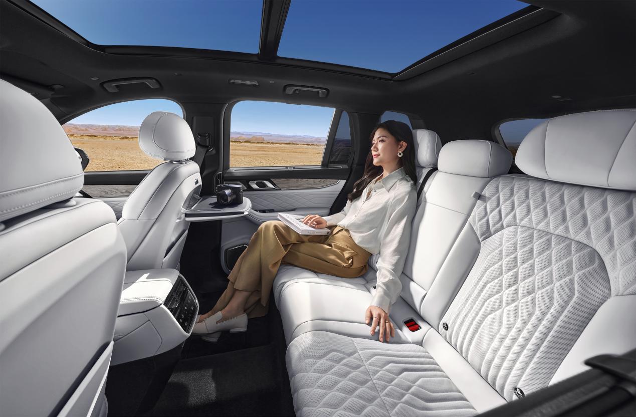 在舒适性上,其配置水平堪称周全。全车Nappa真皮座椅将通风、加热、按摩功能覆盖至前后排,体现了对全车乘员的同等关怀。14扬声器Bose音响、双层隔音玻璃、海洋之谜香氛系统及四温区空调等配置,共同构建了一个静谧、惬意的移动私享空间。