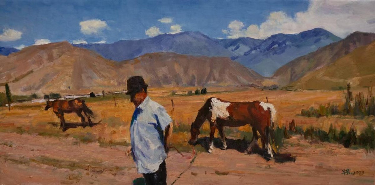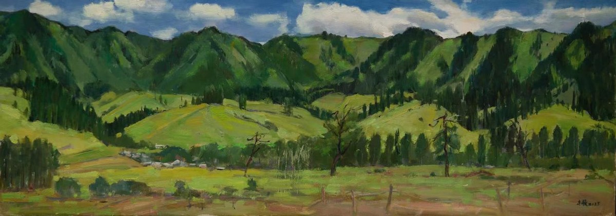 作品名称 《那拉提》材质布面油画尺寸50x140cm年代2025年