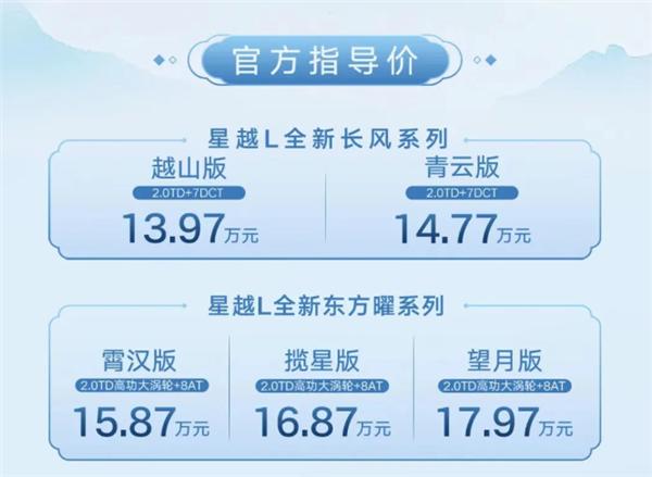 吉利星越L长风版上市,新车共推出2款车型,售价区间为13.97-14.77万元,限时价12.47-13.27万元。