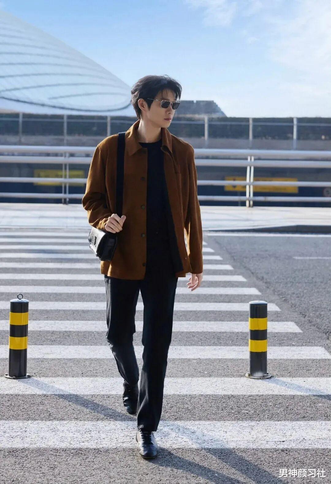 衬衫外套是春季叠穿的灵魂,它比衬衫厚实,比夹克柔软。衬衫外套 + 黑色打底 + 黑裤子,走的是 City Boy 路线。这种穿法对身材包容度极高,无论你是偏瘦还是微胖,都能穿出一种治愈系的邻家感。