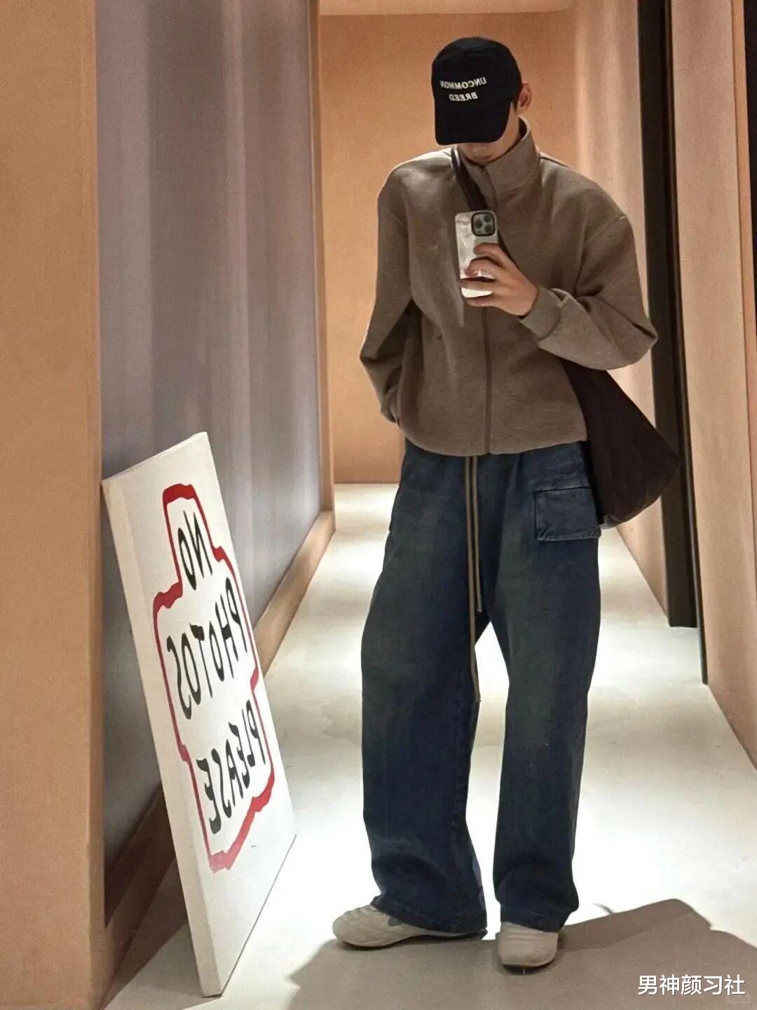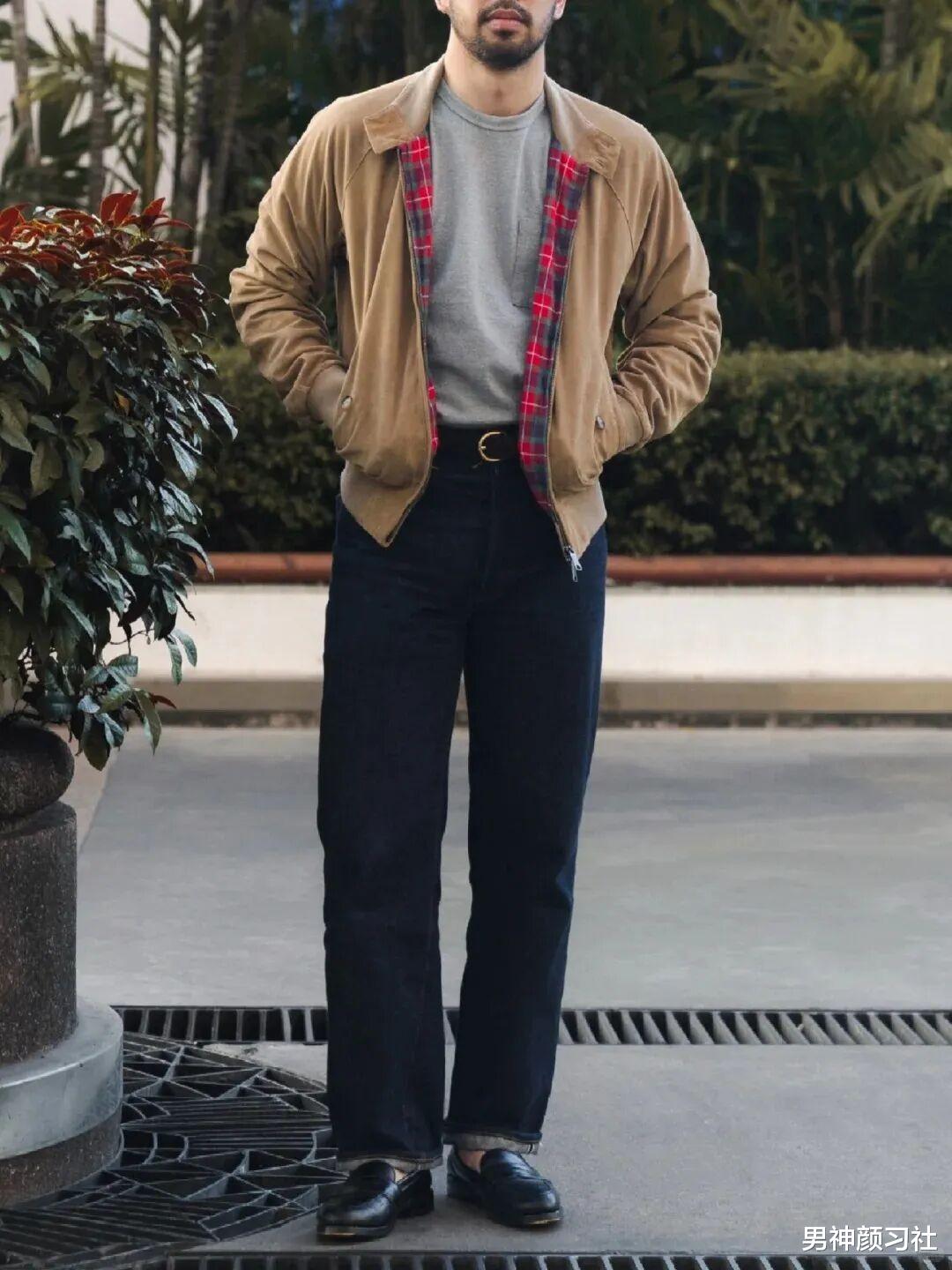 哈灵顿夹克 + 白衬衫 + 原色牛仔裤,是老派绅士与街头少年的结合体。如果你觉得西装太老气,卫衣太幼稚,哈灵顿夹克就是那个平衡点。选一件深蓝色或卡其色的款式,内搭一件白T,干练的腰线会让你看起来非常有精气神。