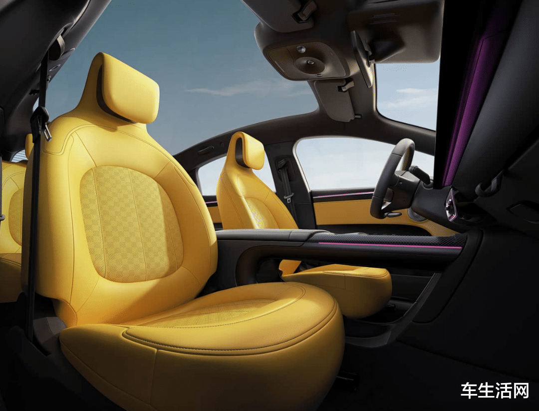 内饰提供格律黄、玄影黑、原野棕三种配色,适配不同审美偏好,256色氛围灯进一步提升座舱氛围感。座椅采用Nappa真皮包裹,搭配HDD绗缝复合工艺,兼顾乘坐舒适性与豪华质感。